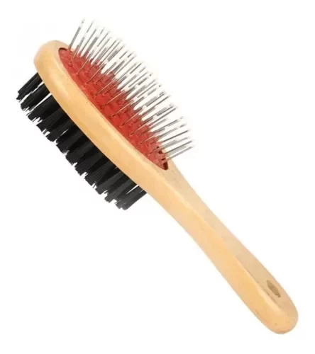 Cepillo doble con mango de madera ideal para perros de pelo largo